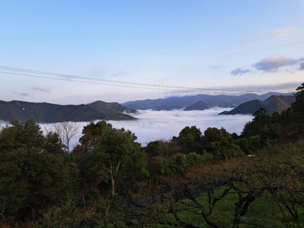 幻想的な雲海が広がり、その上にうっすらと雪化粧をまとった景色が見られました。白く染まった山々と雲の海が織りなす風景は、この季節ならではの美しさです。